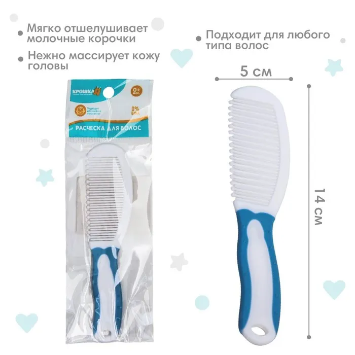 "Удобная расческа с закругленными зубчиками предназначены для малышей с первых дней жизни. С помощью расчески с частыми закругленными зубчиками удобно расчесывать запутавшиеся и скатавшиеся волосы. Размер и форма подобраны с учётом возрастных особенностей. Аксессуар удобно ложится в маленькую ладошку крохи. Изготовлено из безопасного материала - не содержит бисфенол А."