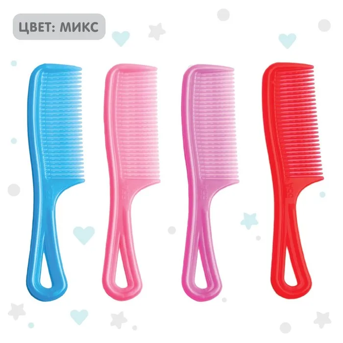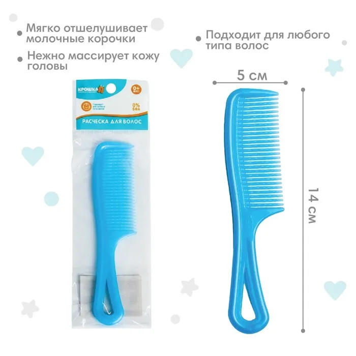 "Удобная расческа с закругленными зубчиками предназначены для малышей с первых дней жизни. С помощью расчески с частыми закругленными зубчиками удобно расчесывать запутавшиеся и скатавшиеся волосы. Размер и форма подобраны с учётом возрастных особенностей. Аксессуар удобно ложится в маленькую ладошку крохи. Изготовлено из безопасного материала - не содержит бисфенол А."