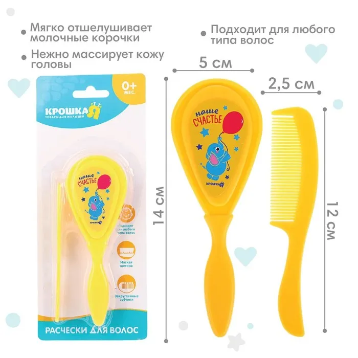 Расческа-щетка с мягкой щетиной и удобная расческа с закругленными зубчиками предназначены для малышей с первых дней жизни.