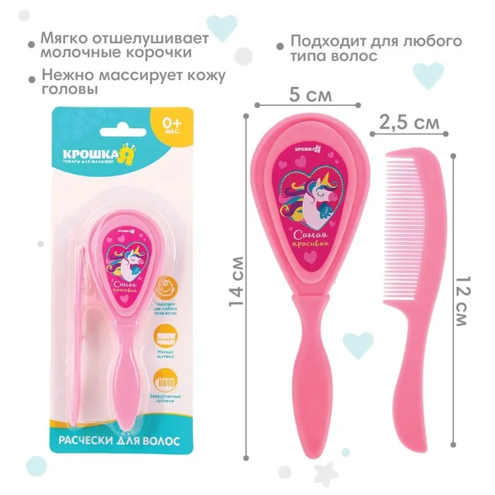 Расческа-щетка с мягкой щетиной и удобная расческа с закругленными зубчиками предназначены для малышей с первых дней жизни.