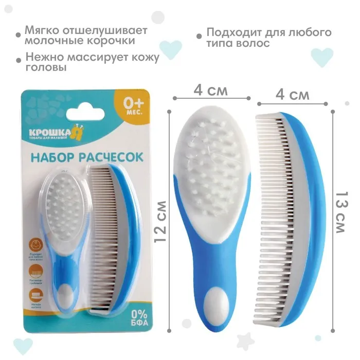 Расческа-щетка с мягкой щетиной и удобная расческа с закругленными зубчиками предназначены для малышей с первых дней жизни.