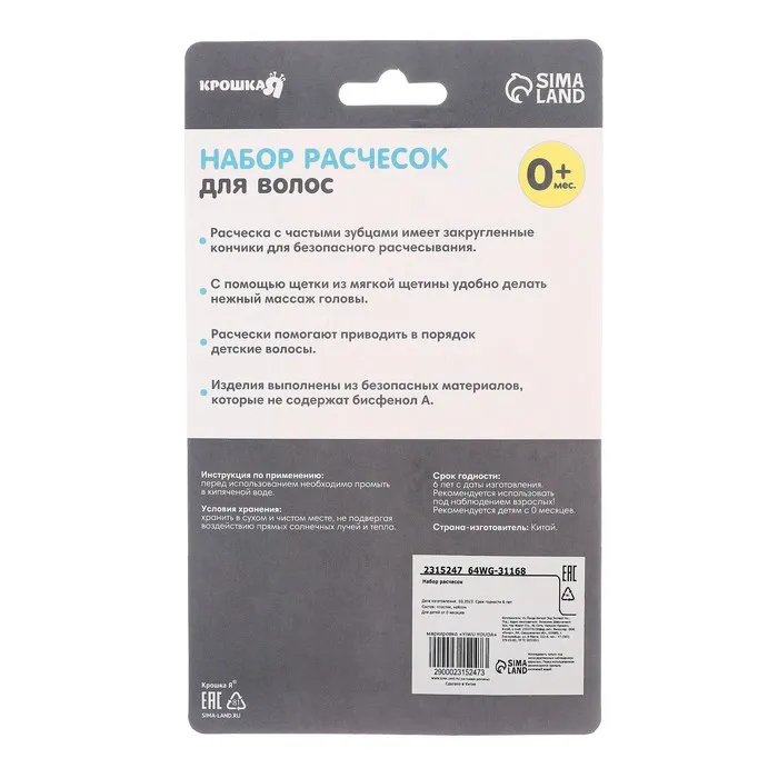 Расчёска детская, массажная щётка для волос в наборе Крошка Я, от 0 мес., МИКС — Характеристики
