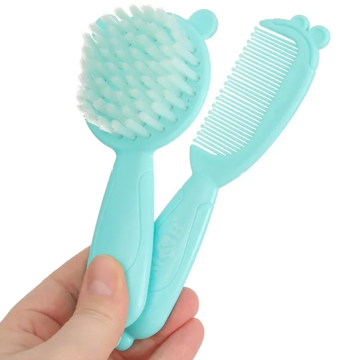 Расческа-щетка с мягкой щетиной и удобная расческа с закругленными зубчиками предназначены для малышей с первых дней жизни.