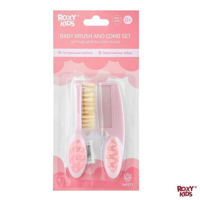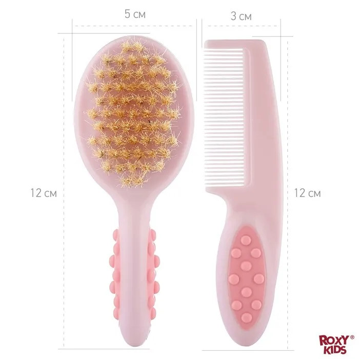 Расческа с натуральной щетиной и расческой-гребешком ROXY-KIDS позволит наиболее нежно и комфортно ухаживать за волосами малыша. Эти аксессуары не причинят крохе боль, не травмируют нежную кожу и не будут агрессивно воздействовать на мягкие ткани детской головки. Комплект из гребешка и щетки от ROXY-KIDS обязательно пригодится родителям детей первых лет жизни. C помощью расчески с частыми, но не острыми зубчиками удобно расчесывать запутавшиеся и скатавшиеся волосы, а с помощью мягкой натуральной щетки можно пригладить их и придать аккуратный вид. Она также пригодится для массажа кожи головы.
