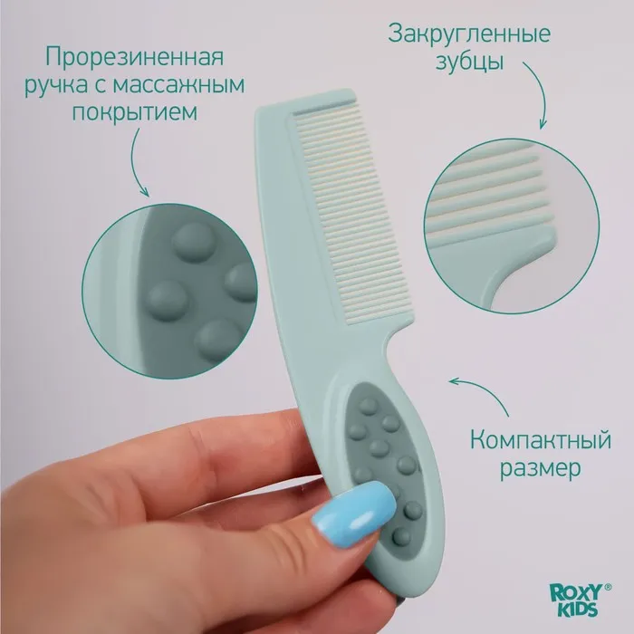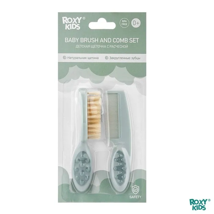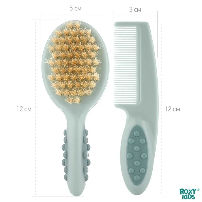 Расческа с натуральной щетиной и расческой-гребешком ROXY-KIDS позволит наиболее нежно и комфортно ухаживать за волосами малыша. Эти аксессуары не причинят крохе боль, не травмируют нежную кожу и не будут агрессивно воздействовать на мягкие ткани детской головки. Комплект из гребешка и щетки от ROXY-KIDS обязательно пригодится родителям детей первых лет жизни. C помощью расчески с частыми, но не острыми зубчиками удобно расчесывать запутавшиеся и скатавшиеся волосы, а с помощью мягкой натуральной щетки можно пригладить их и придать аккуратный вид. Она также пригодится для массажа кожи головы.
