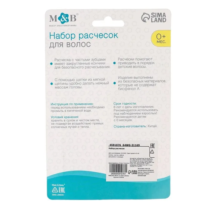 Расческа-щетка с мягкой щетиной и удобная расческа с закругленными зубчиками предназначены для малышей с первых дней жизни.