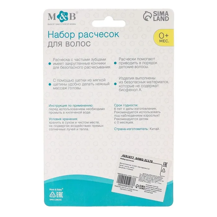 Расческа-щетка с мягкой щетиной и удобная расческа с закругленными зубчиками предназначены для малышей с первых дней жизни.