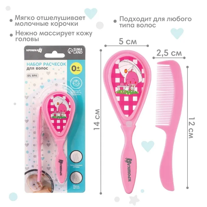 Расческа-щетка с мягкой щетиной и удобная расческа с закругленными зубчиками предназначены для малышей с первых дней жизни.