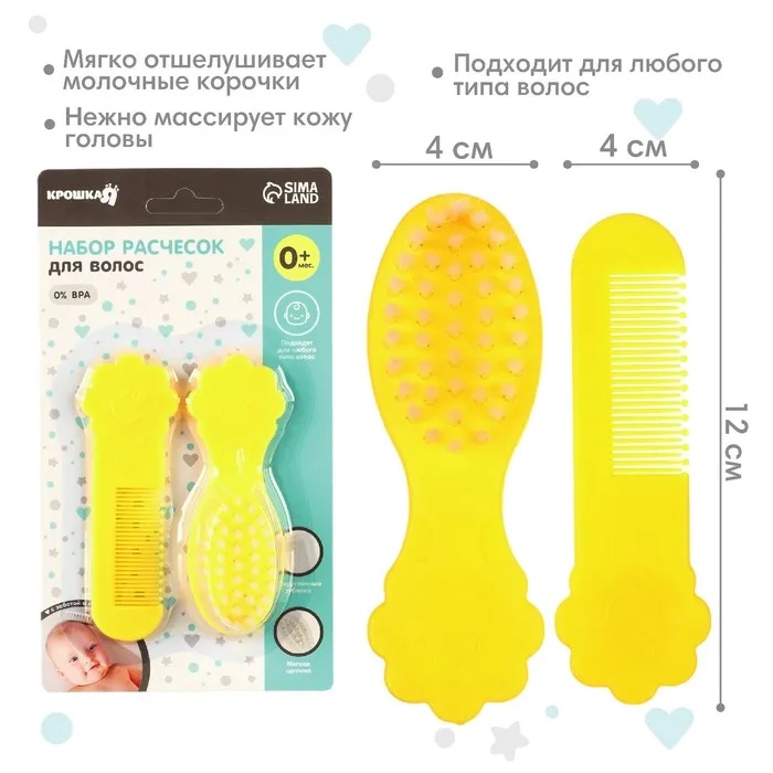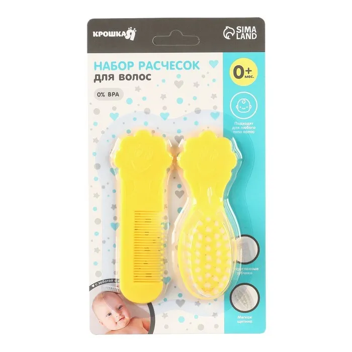 Расчёска детская, щётка для волос в наборе Крошка Я «Цветочек», желтый — Характеристики