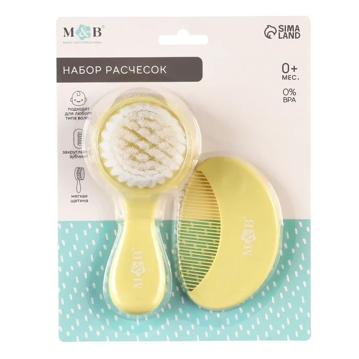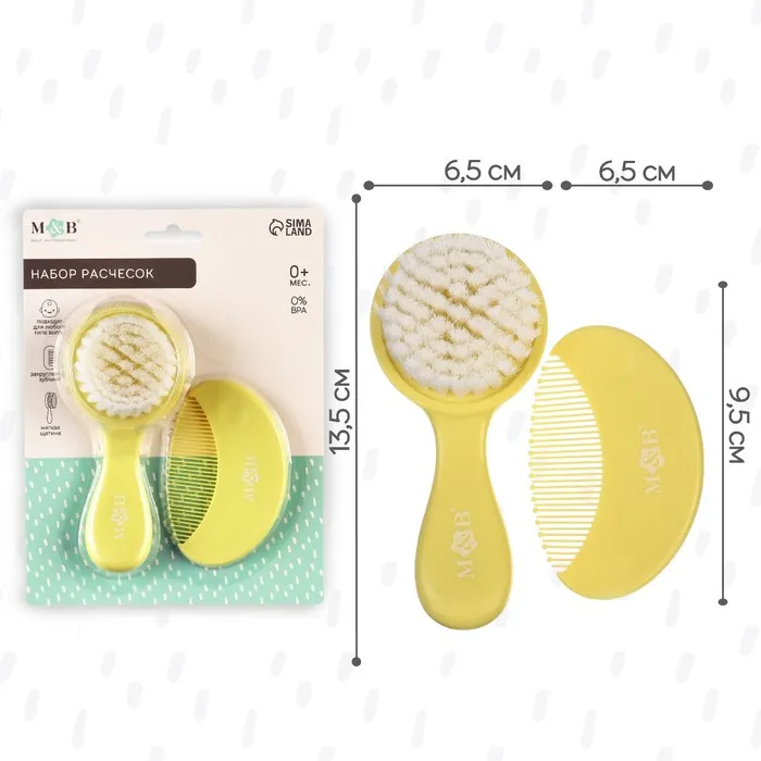 Расчёска детская, щётка для волос в наборе M&B, 2 шт., желтый — Характеристики