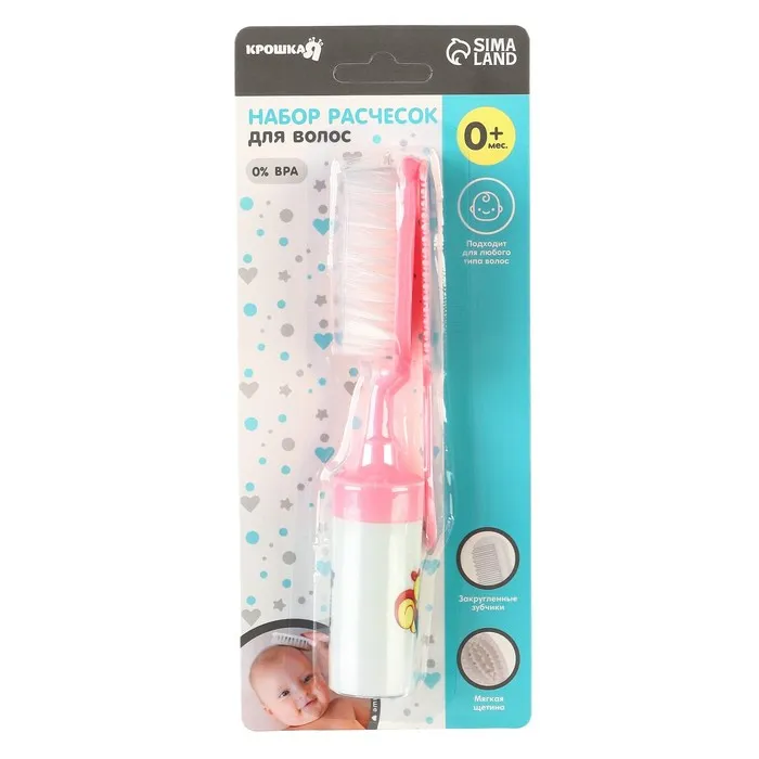 Расчёска детская, щётка для волос в наборе с погремушкой Крошка Я «Малыш», 2 шт., розовый, МИКС — Характеристики