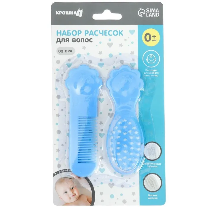 Расческа-щетка с мягкой щетиной и удобная расческа с закругленными зубчиками предназначены для малышей с первых дней жизни.