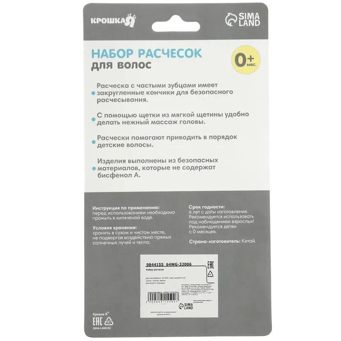 Составляющие набора: Расчёска для волос