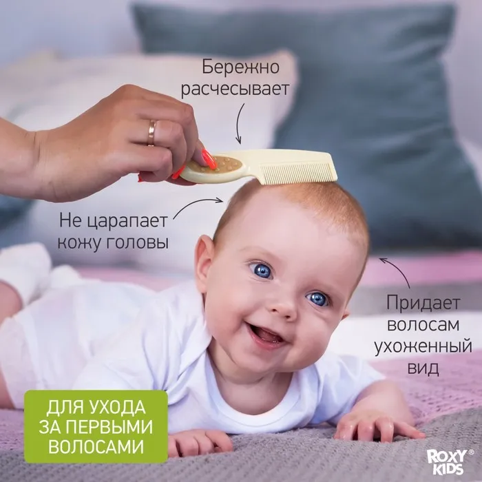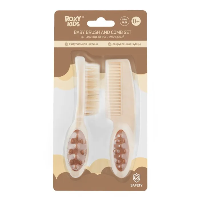 Расческа с натуральной щетиной и расческой-гребешком ROXY-KIDS позволит наиболее нежно и комфортно ухаживать за волосами малыша. Эти аксессуары не причинят крохе боль, не травмируют нежную кожу и не будут агрессивно воздействовать на мягкие ткани детской головки. Комплект из гребешка и щетки от ROXY-KIDS обязательно пригодится родителям детей первых лет жизни. C помощью расчески с частыми, но не острыми зубчиками удобно расчесывать запутавшиеся и скатавшиеся волосы, а с помощью мягкой натуральной щетки можно пригладить их и придать аккуратный вид. Она также пригодится для массажа кожи головы.