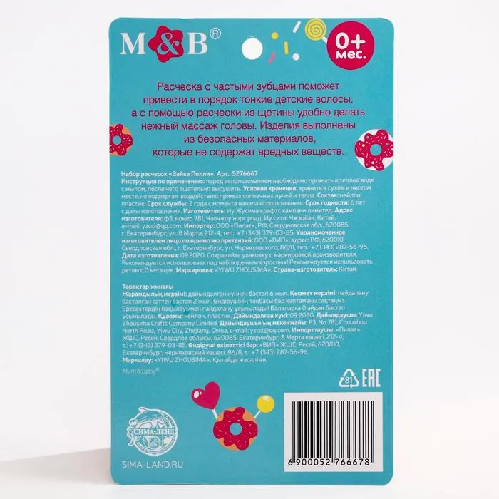 Составляющие набора: Расчёска для волос