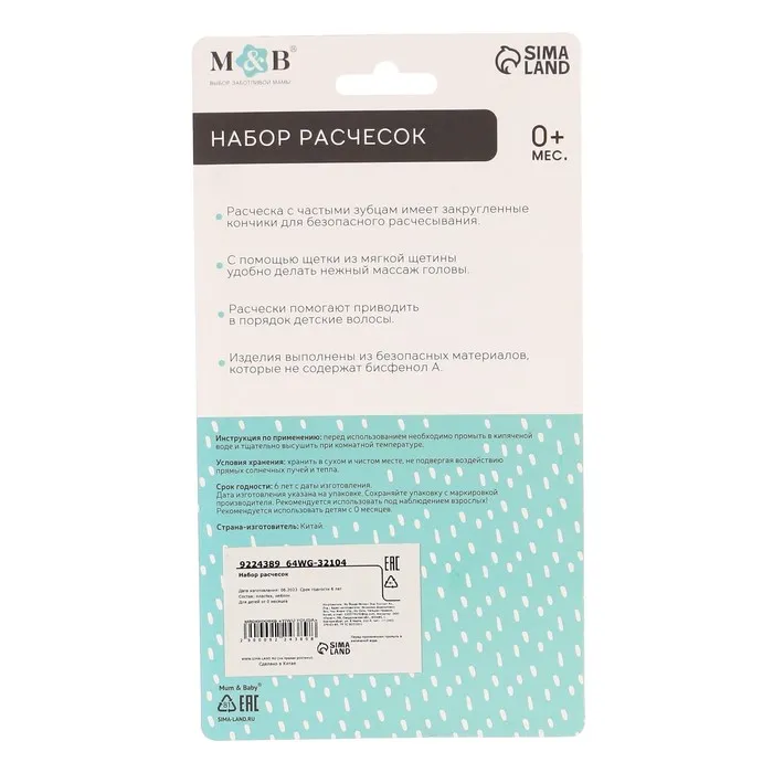 Расческа-щетка с мягкой щетиной и удобная расческа с закругленными зубчиками предназначены для малышей с первых дней жизни.