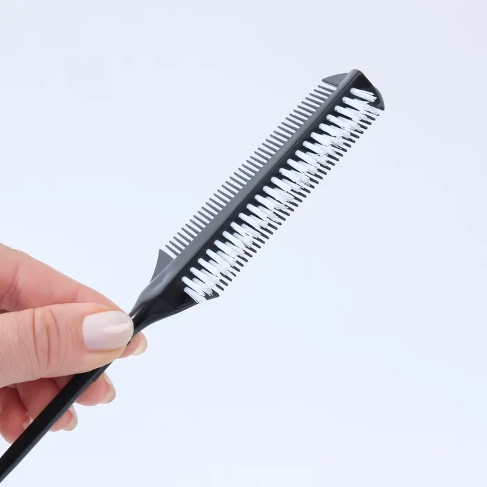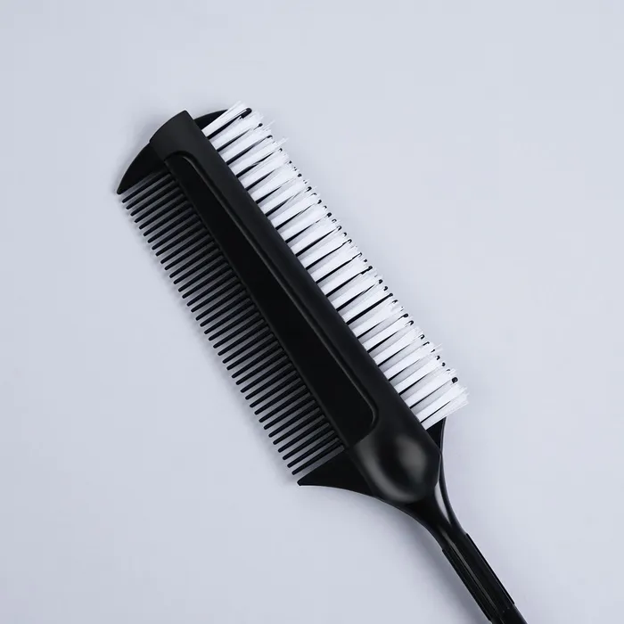 Пластмассовая расчёска бережно распутает локоны и подготовит их к процедуре окрашивания. Искусственная щёточка плотно нанесёт средство на каждый волосок. Она легко моется и не впитывает составы.