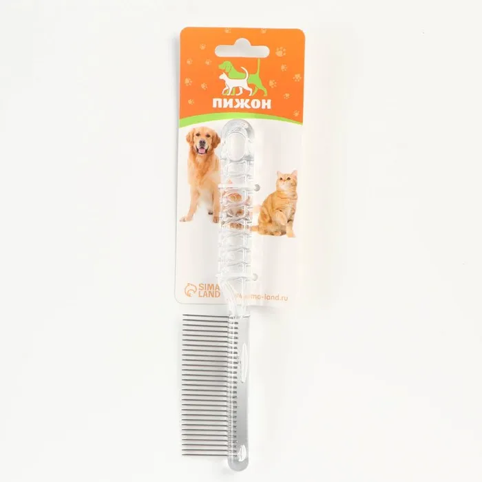 Расческа предназначена для тщательного ухода за шерстью кошек и собак. Она легко удаляет частички пыли и грязи с шерсти животного, не повреждая поверхность кожи и не травмируя структуру шерсти.