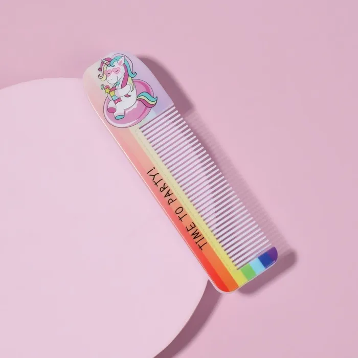 Расчёска «ЕДИНОРОГ ПАТИ», с ручкой, фигурная, 14.7×3.7(±1) см, разноцветная — Характеристики