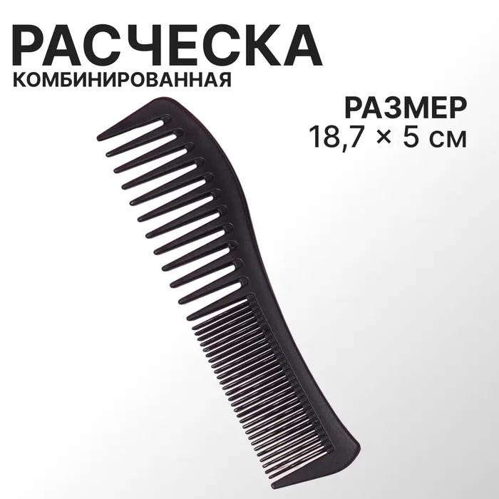 Комбинированная расчёска позаботится о волосах любого типа. Гребень с разной частотой зубцов аккуратно расчешет сухие и мокрые волосы, выровняет пробор, поможет при стрижке, горячей и холодной укладке, равномерно распределит по прядям пенку, мусс, гель, маску или краску. Компактный размер позволит носить гребень с собой.