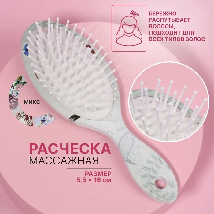 Расчёска массажная, 5.5×15(±1) см, PVC коробка, МИКС — Характеристики