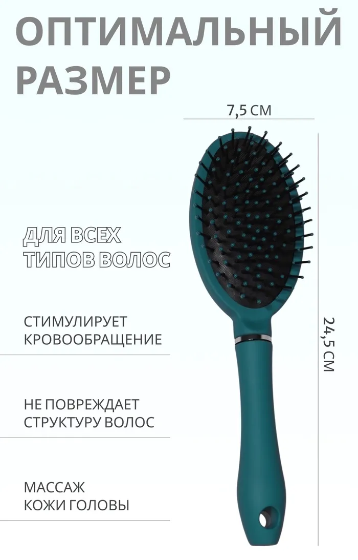 Расчёска массажная, 7.5×24.5 (±1) см, бирюзовая — Характеристики