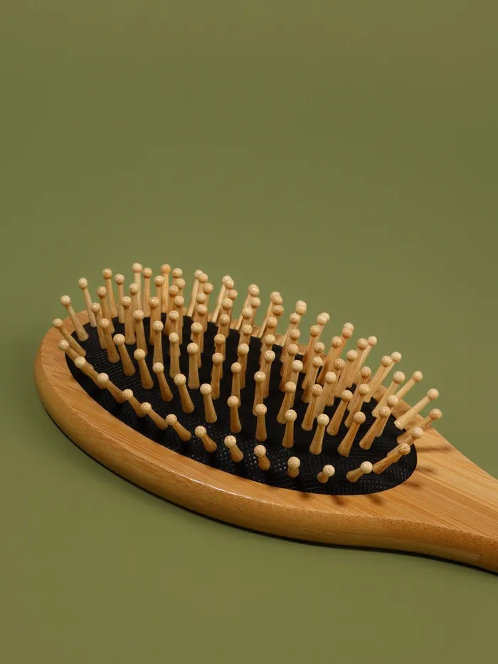 Познакомьтесь с природной элегантностью и эффективностью этого аксессуара для ухода за волосами. Созданная из бамбука, расчёска обладает неповторимым оттенком дерева, который добавляет теплоты и стиля вашему повседневному ритуалу.