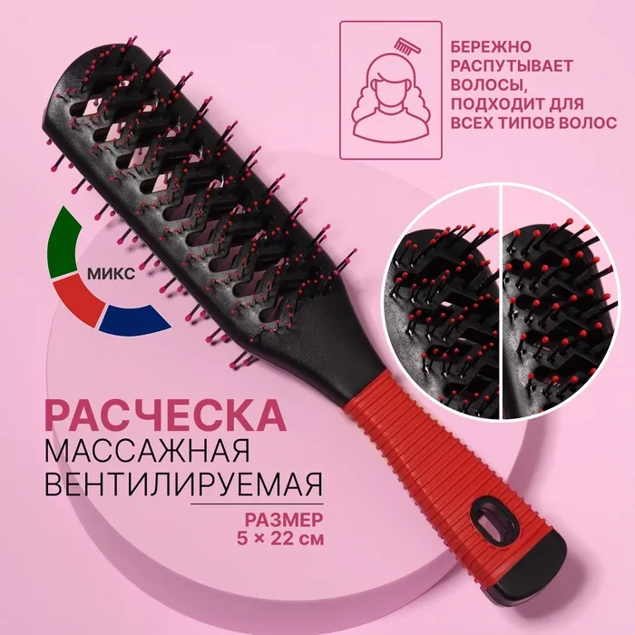 Расчёска массажная, двусторонняя, продуваемая, 5×22 (±1) см, МИКС — Характеристики