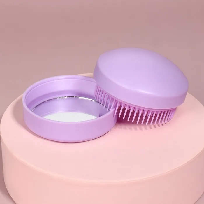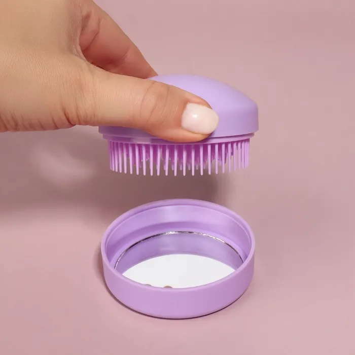 Расчёска массажная, круглая, складная, с зеркалом, d=7.5 см, в коробке, сиреневая — Характеристики