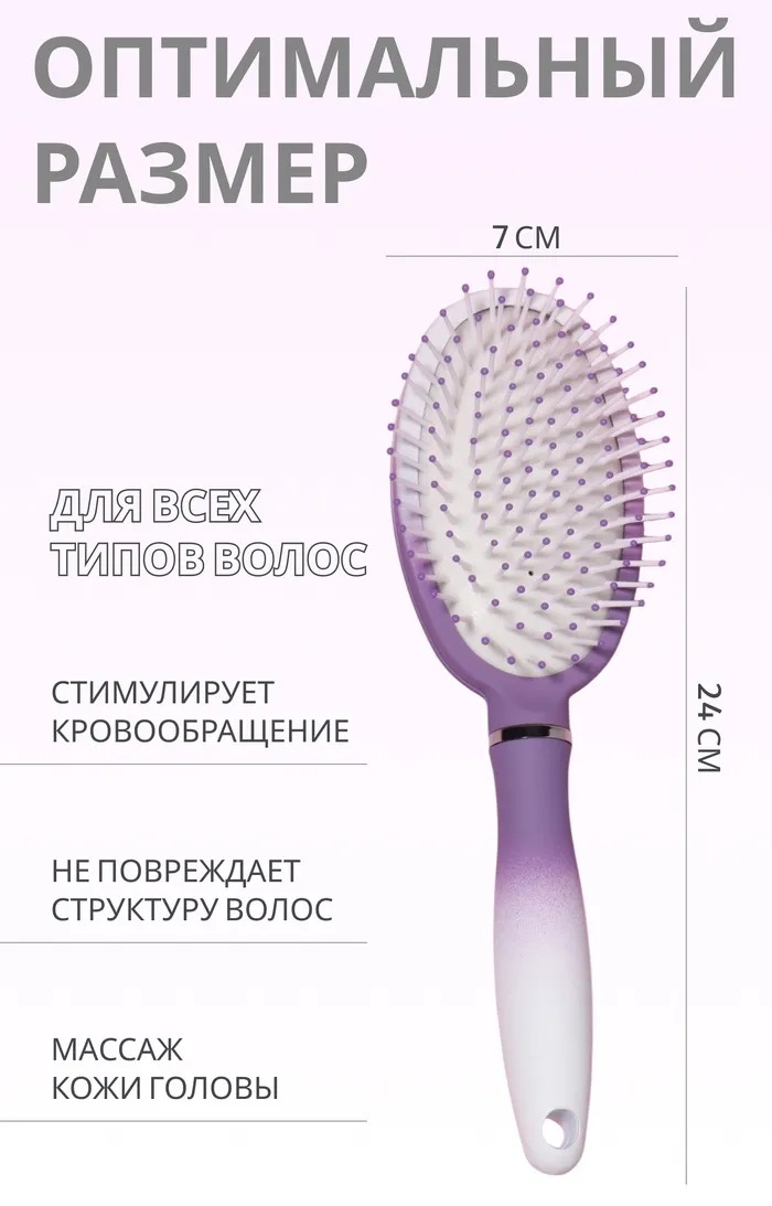 Расчёска массажная, прорезиненная ручка, 7×24 (±1) см, белая, фиолетовая — Характеристики