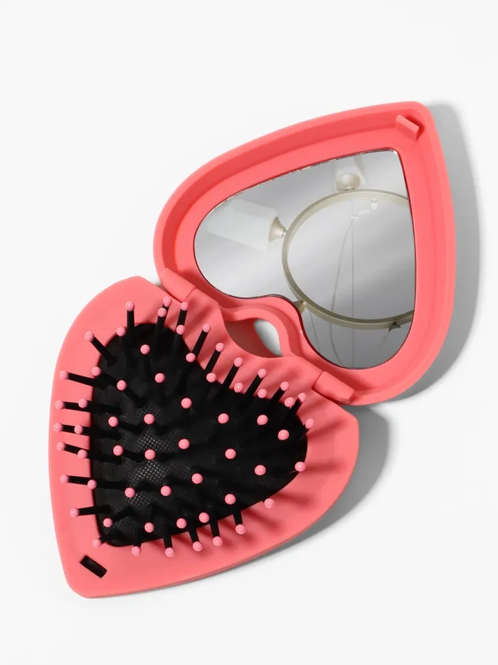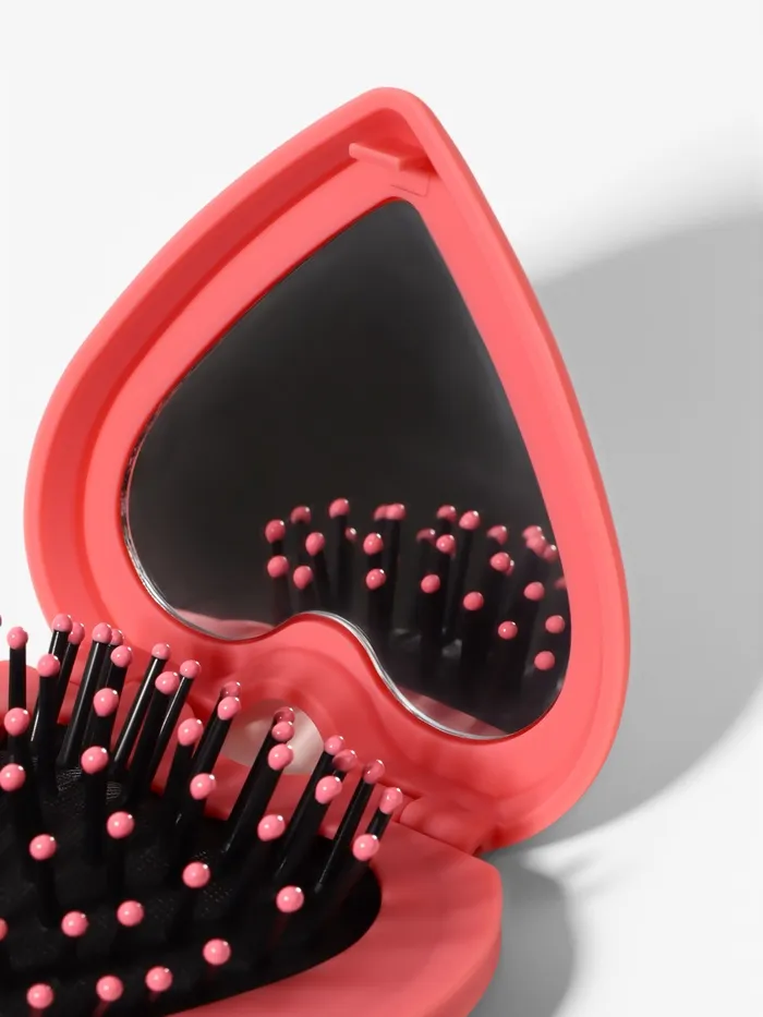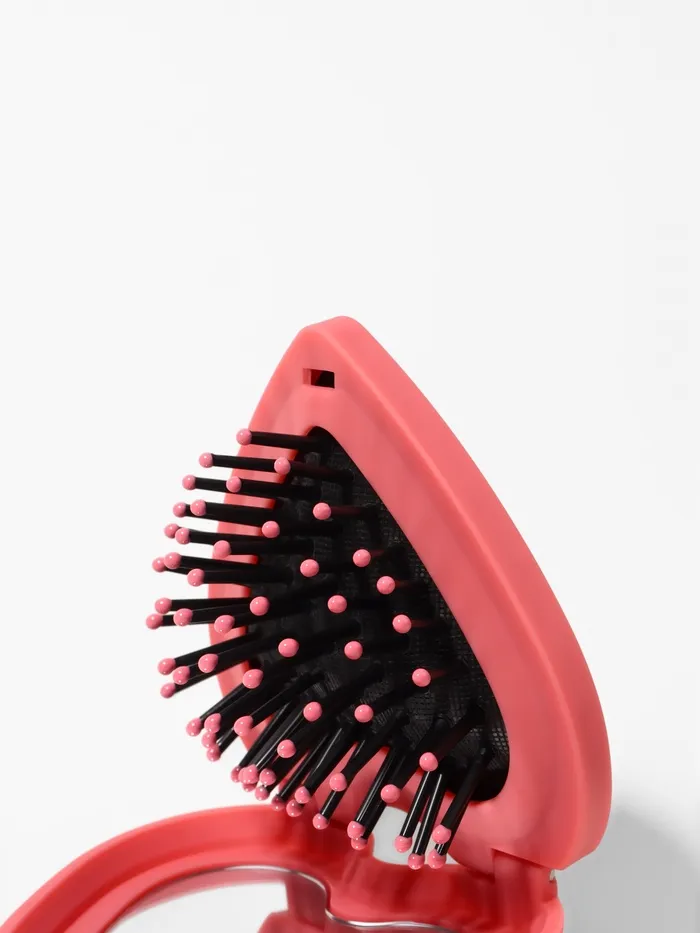 Расчёска массажная «Сердце», складная, с зеркалом, 8×2.5 см, матовая, розовая — Характеристики