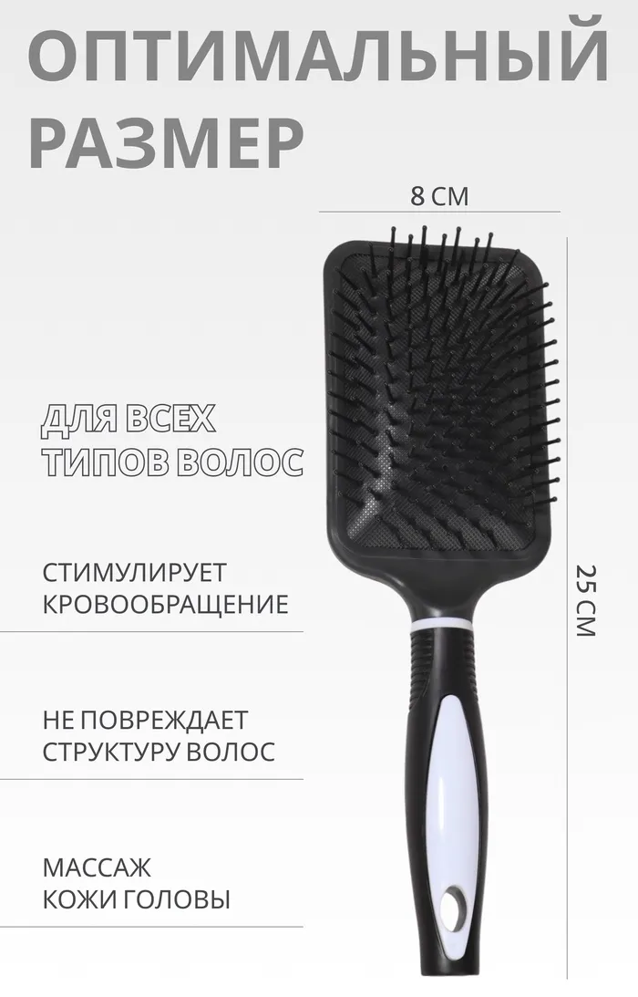 Расчёска массажная, широкая, 8×25(±1) см, чёрная — Характеристики