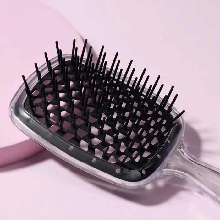 Зубчики расчёски не вырывают волосы и не царапают кожу головы. Отверстия в корпусе и редкие зубцы делают массажку идеальной для сушки и укладки феном. Маленький вес позволяет рукам не уставать во время создания причёски. А материал помогает легко ухаживать и долго использовать изделие.