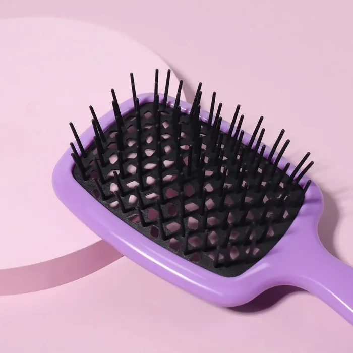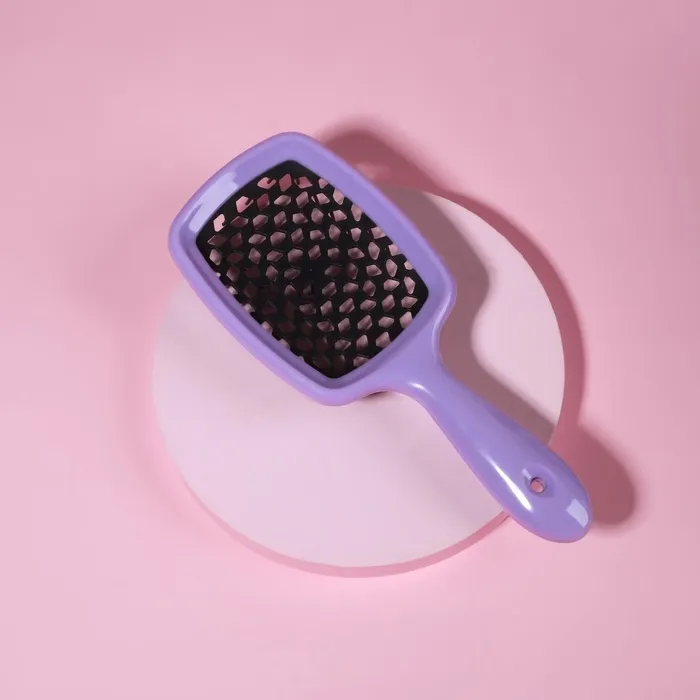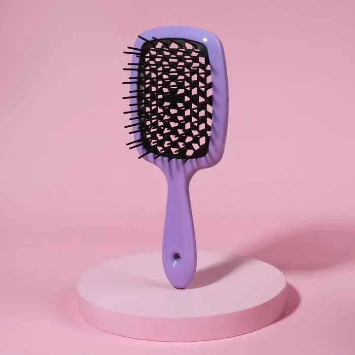 Массажная расческа обеспечивает аккуратный массаж кожи головы и улучшает микроциркуляцию. Зубцы с мягкими кончиками не вырывают волосы и не травмируют кожу головы. Аксессуар легко скользит даже по мокрым волосам и делает расчесывание более комфортным и приятным. Специальный корпус расчески пропускает воздух, что идеально подходит для укладки и позволяет ускорить сушку волос.