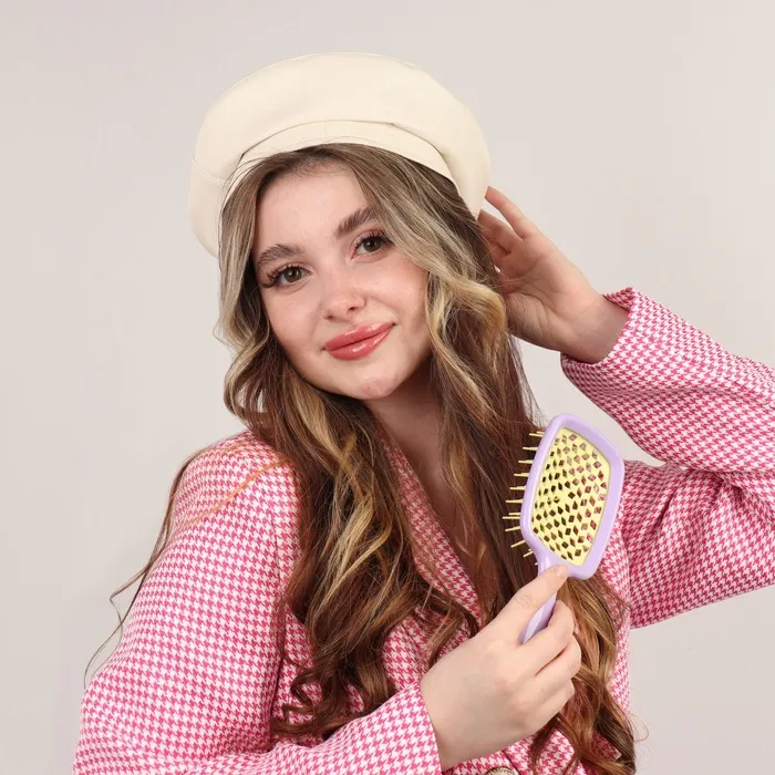 Расчёска вентилируемая. Идеально подходит для придания объёма волосам, укладки феном и брашинга. Ручка удобно лежит в ладони, позволяя совершать лёгкие движения. А приятный цвет аксессуара будет поднимать Вам настроение каждый день.