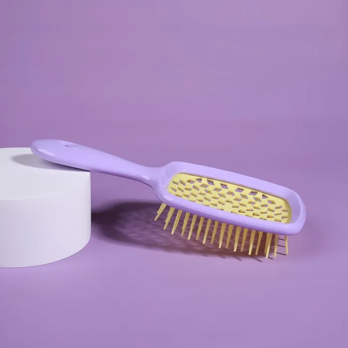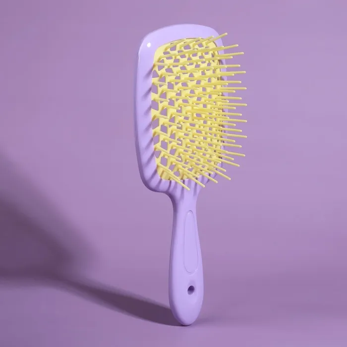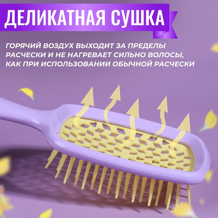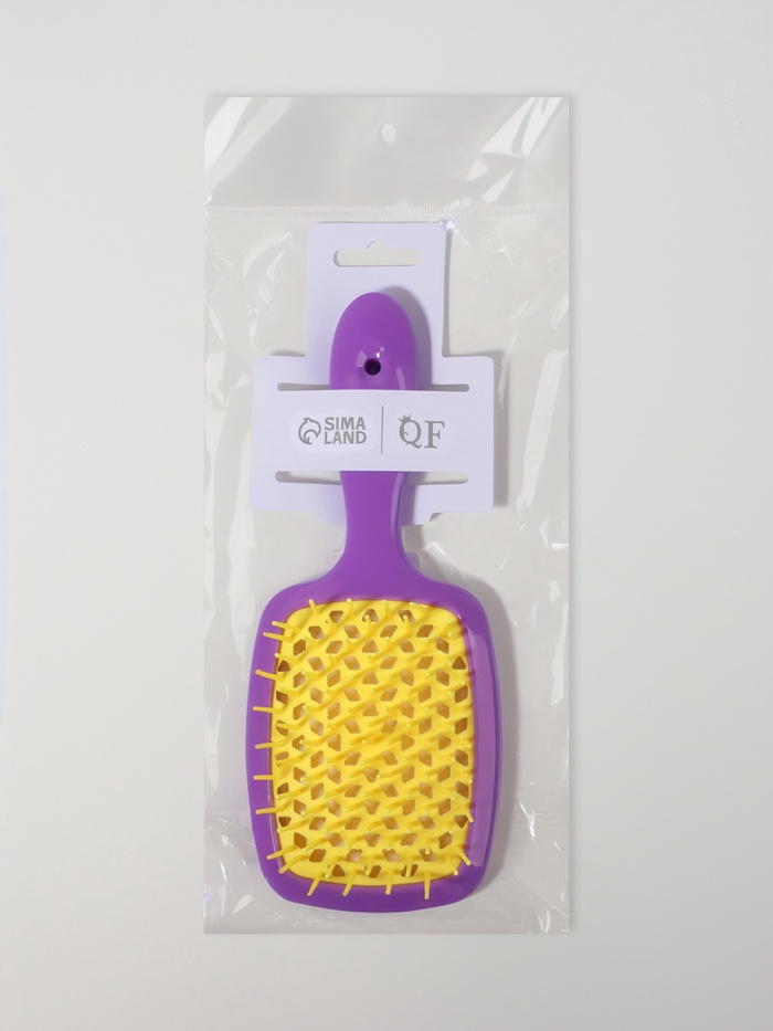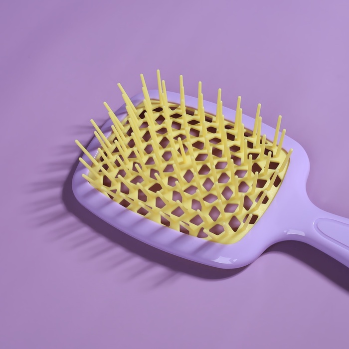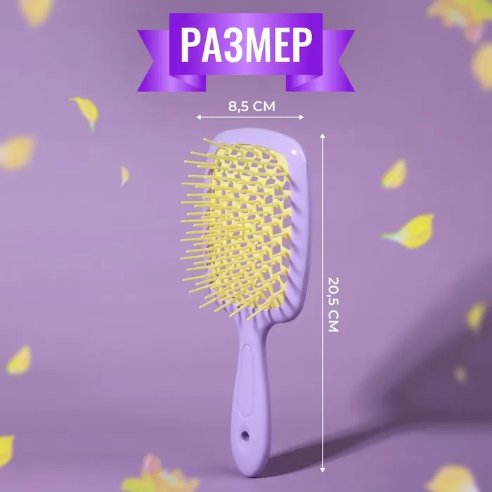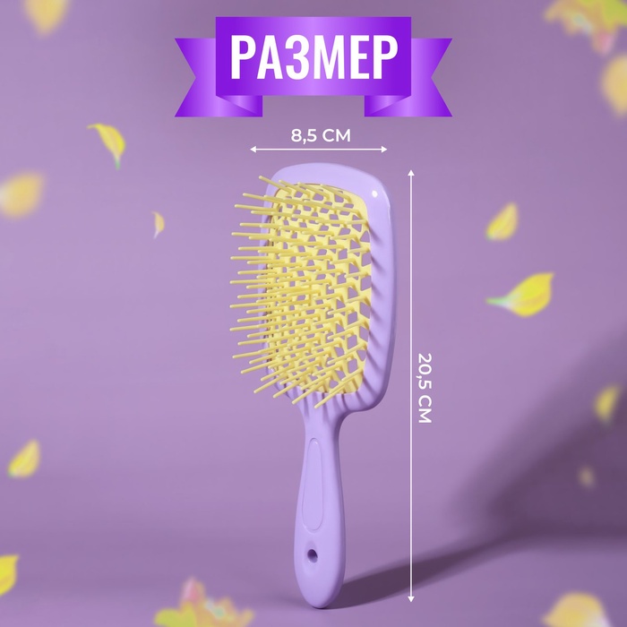 Расчёска массажная, широкая, вентилируемая, 8,5 × 20,5 см, PVC коробка, цвет сиреневый/жёлтый — Характеристики