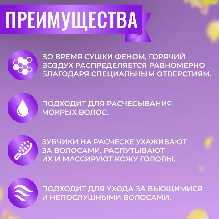Расчёска подходит для прямых, кудрявых, тонких, ослабленных и нарощенных волос.
