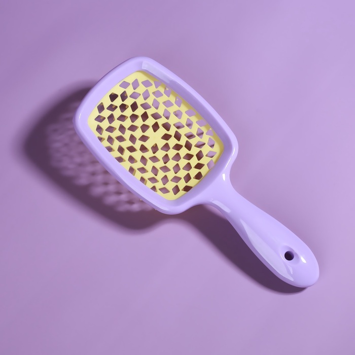 Расчёска массажная, широкая, вентилируемая, 8,5 × 20,5 см, PVC коробка, цвет сиреневый/жёлтый