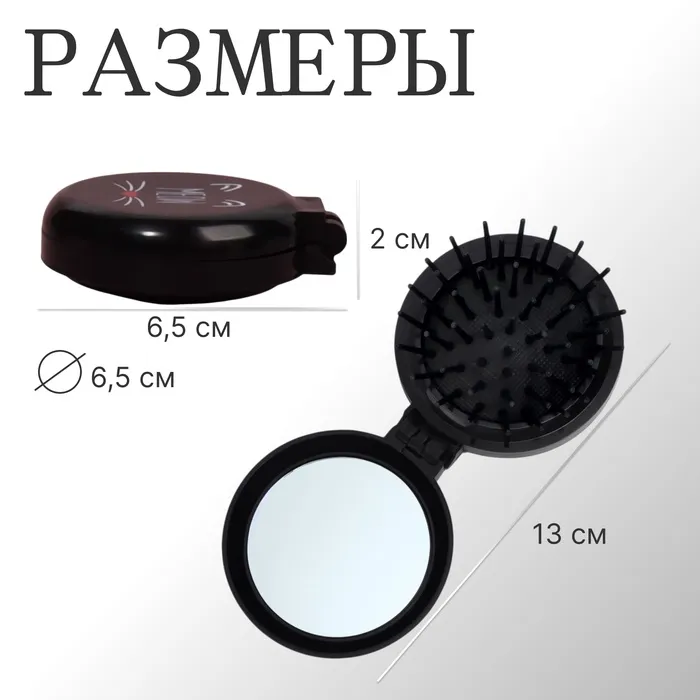 Расчёска массажная, складная, с зеркалом, d = 6,5 см, рисунок МИКС — Характеристики