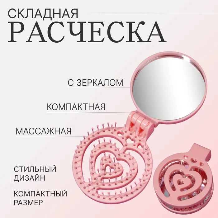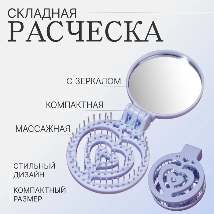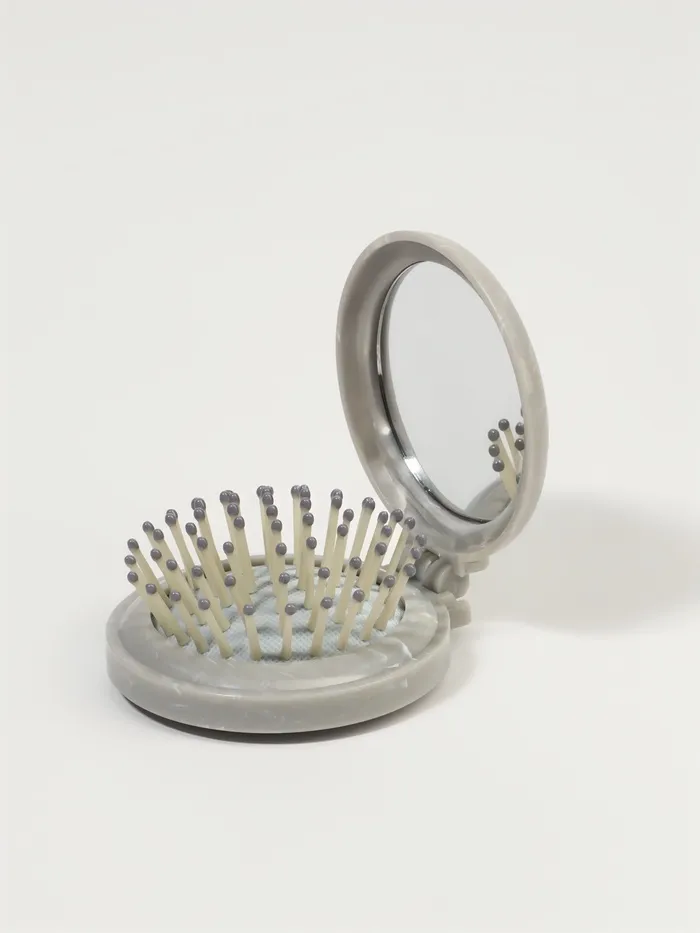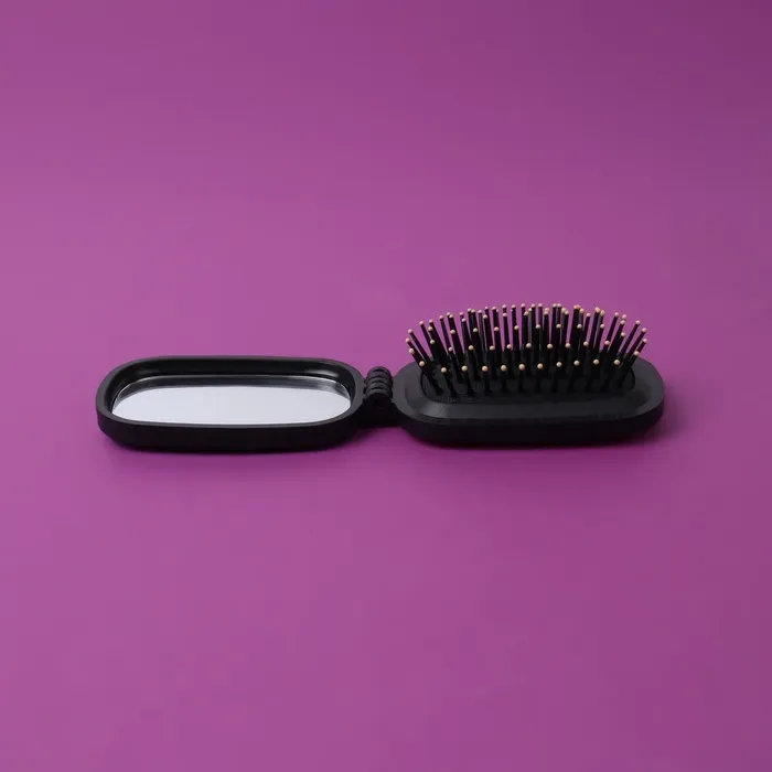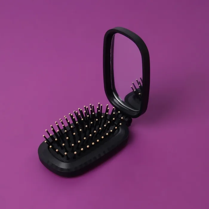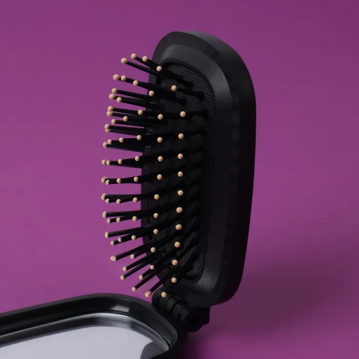 Воспользуйтесь этим удобным аксессуаром, чтобы за считанные секунды подправить макияж или причёску. Удобная форма и компактный размер расчёски позволят вместить её даже в самую миниатюрную сумочку, а крышка с зеркалом защитит подклад от случайной порчи.