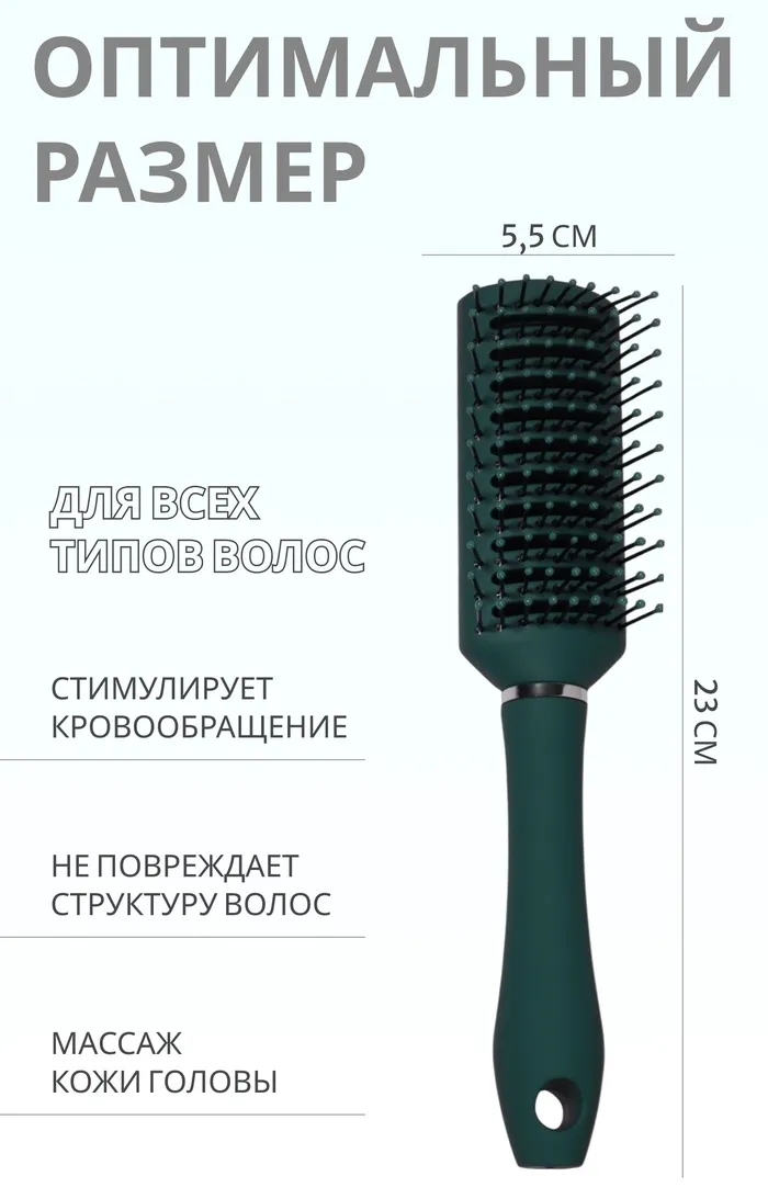 Расчёска массажная, вентилируемая, 5.5×23(±1) см, зелёная — Характеристики