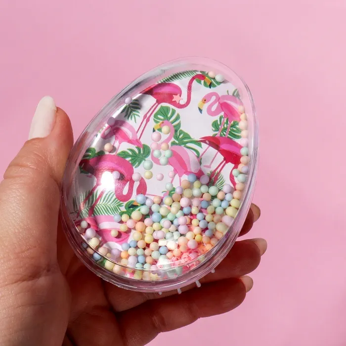 Каждой девочке важно, чтобы ее волосы всегда выглядели ухоженно и безупречно. Расческу удобно брать с собой, так как она легко помещается в женской сумочке. Вы в любой момент сможете подправить свою прическу и убедиться в своей неотразимости. Овальная форма расчески комфортно помещается в руке, а безопасные щетинки с легкостью распутывают волосы по всей длине. Расческа отличается оригинальным дизайном, который всегда сможет поднять вам настроение и удивить окружающих.