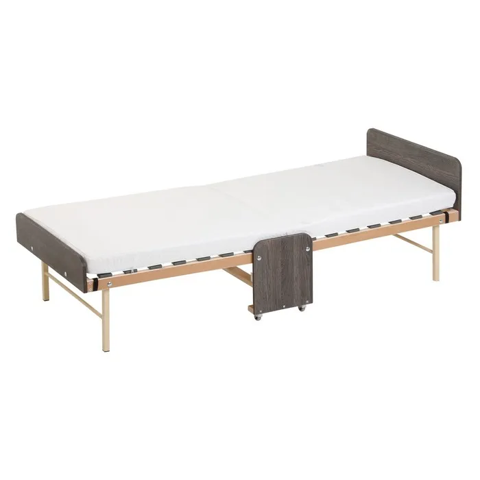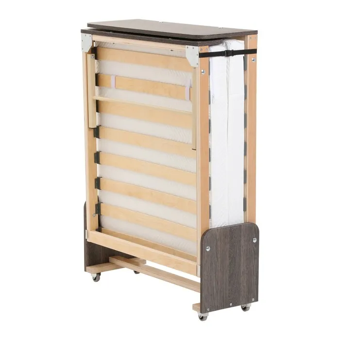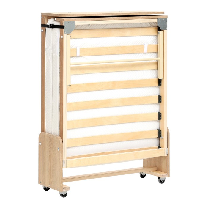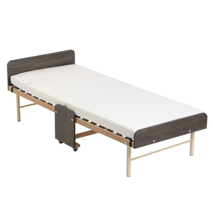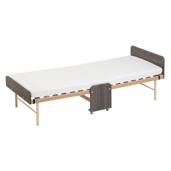 Односпальная раскладушка «ОСНОВА СНА» (Венге 190*80) это сочетание металла и дерева в одной конструкции. Раскладная кровать оснащена колесиками, которые легко передвигают изделие с места на места. Половинки легко собираются и фиксируются с помощью специального крепежа-фиксатора, превращая изделие в компактную тумбу, которая не займет много места. Продаётся с матрасом.