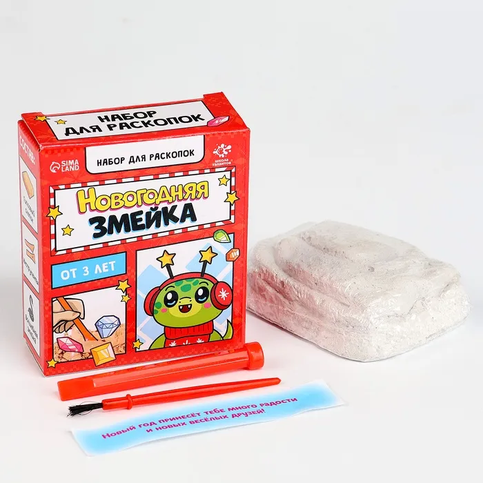 Набор для раскопок «Новогодняя змейка» — это отличная возможность подарить ребёнку не просто игрушку, а настоящее волшебство. Символ года по китайскому календарю — змея — издревле является символом магии, мудрости и силы. Набор позволит ощутить себя настоящим археологом, раскрывая тайны древности и находя свою собственную «волшебную змейку», которая исполнит любое желание.