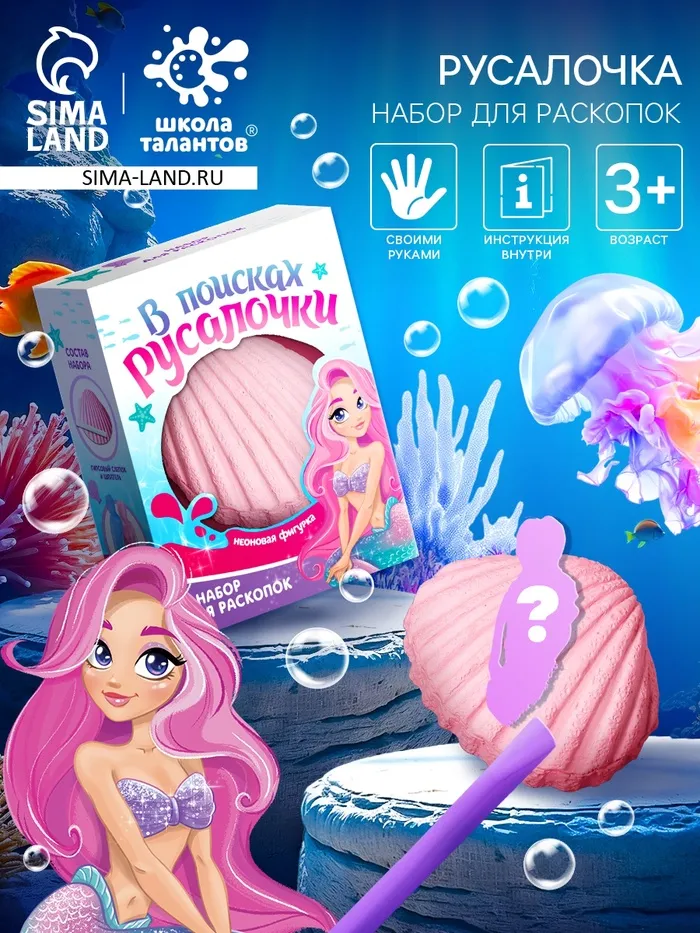 Набор для раскопок «В поисках русалочки» поможет осуществить самую заветную мечту. Малышке нужно найти в ракушке персонажа любимой сказки, который исполнит любое желание.