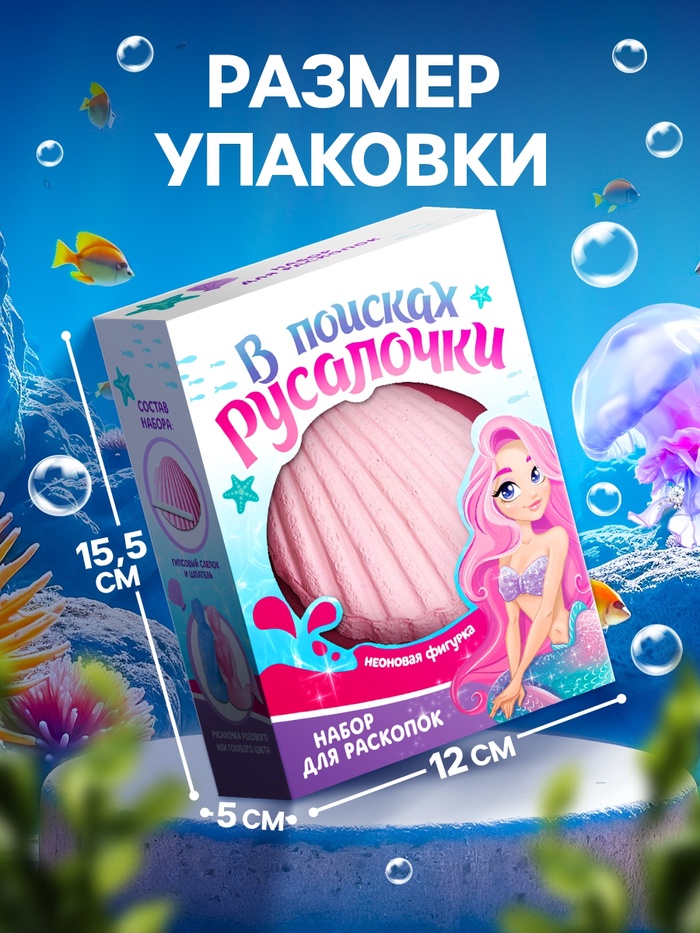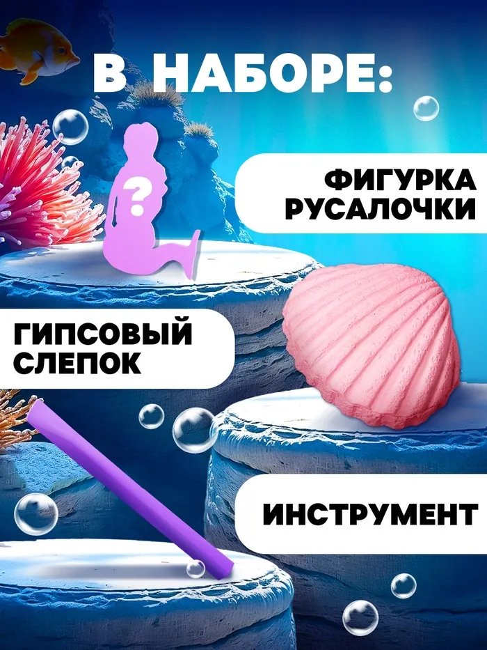 В комплекте: гипсовый слепок ракушки, шпатель, фигурка русалочки розового или голубого цвета.