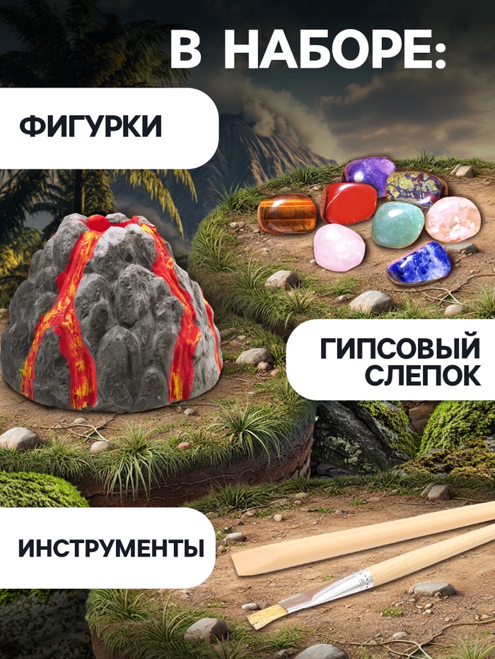Набор для раскопок «Секреты вулкана» — это не просто игрушка, это отличный подарок в мир удивительных открытий и шанс стать первооткрывателем в мире раскопок.