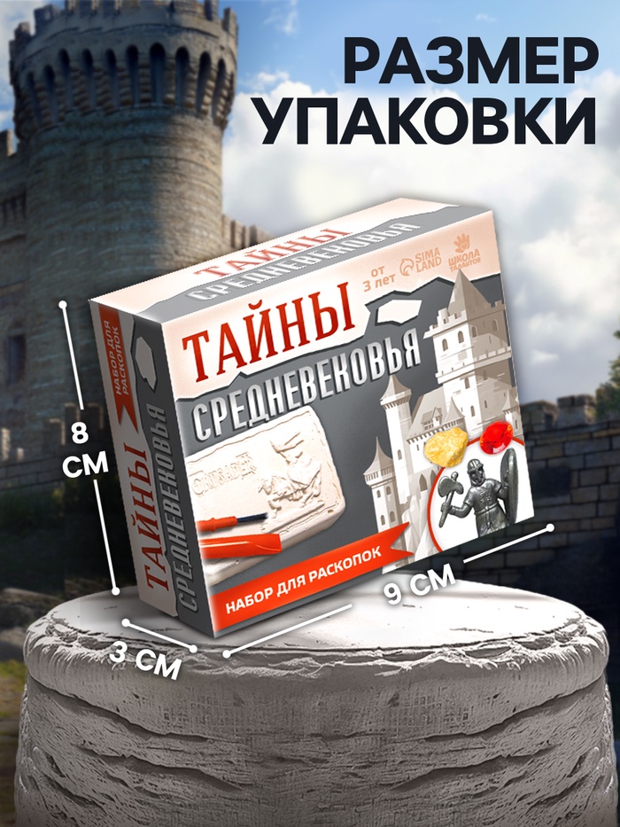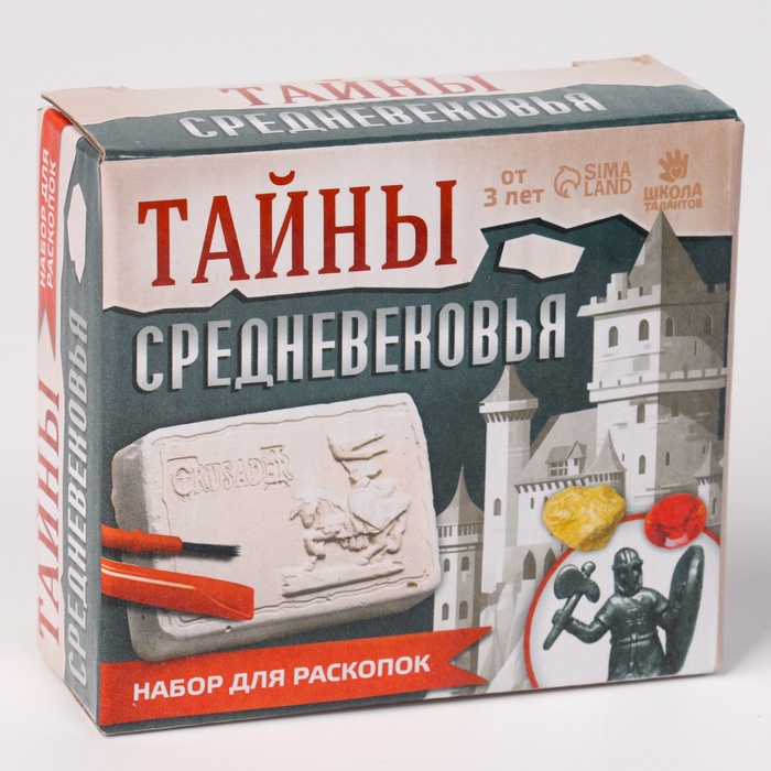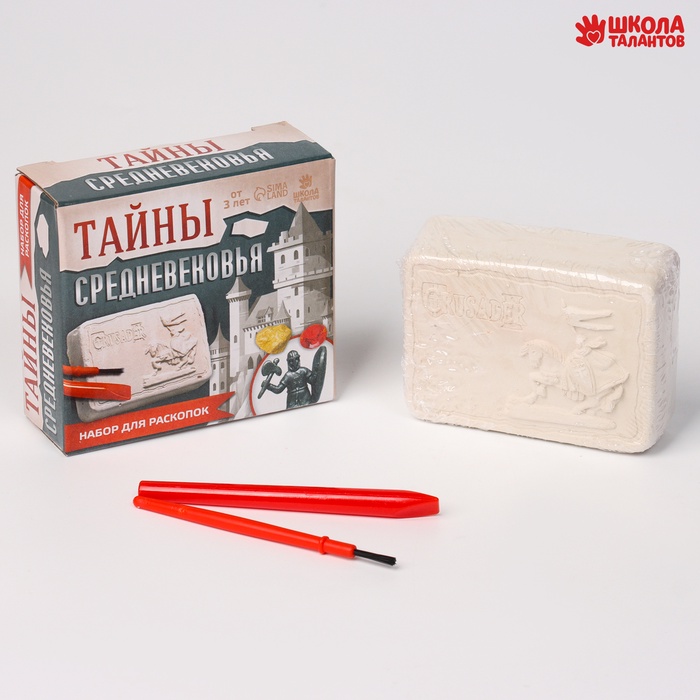 Набор для раскопок «Тайны средневековья» — набор юного археолога, который погрузит вашего ребёнка в изучение эпохи средневековых рыцарей. Он поможет развить любознательность и тягу к науке, его мелкую моторику рук. Усилит мотивацию к познаниям интересная игрушка внутри гипсового слепка.