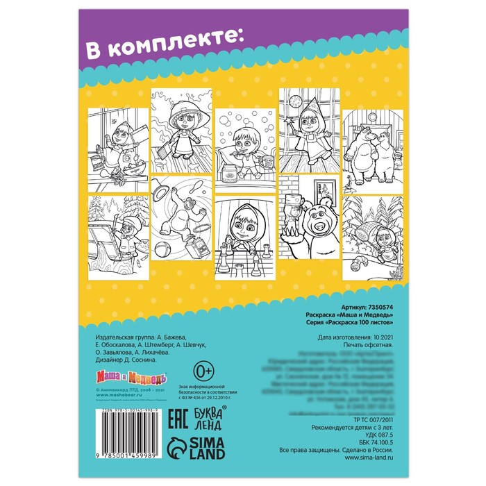 Раскраска с героями «Маша и Медведь» станет отличным спутником для творческого развития малышей. На её страницах ребёнок найдёт различные сюжеты, каждый из которых повторяется 10 раз, что делает раскраску идеальной для групповых занятий в детском саду или длительного домашнего использования.