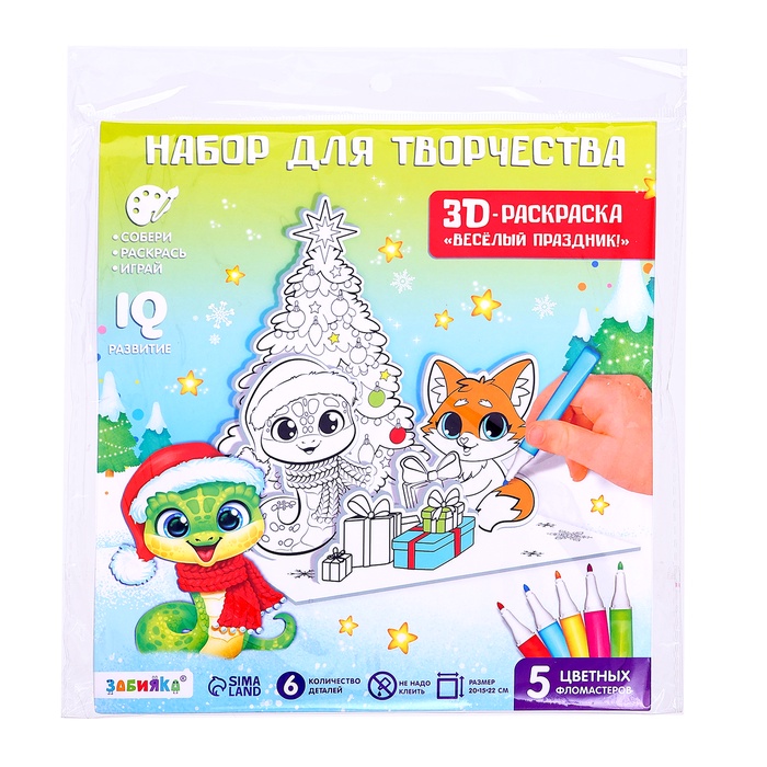 3D-раскраска «Весёлый праздник» — это игрушка, конструктор и раскраска для развития творческих способностей ребёнка! Такой подарок поможет малышу скрасить ожидание Нового года, привить любовь к творчеству, а также потренировать мелкую моторику, внимательность и воображение.